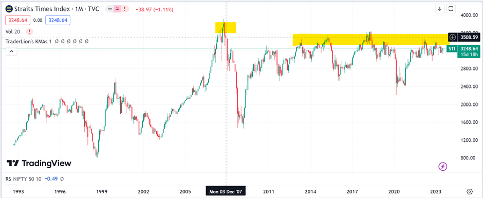 Below is the graph of Singapore STI Index since inception till date (15/07/2023)