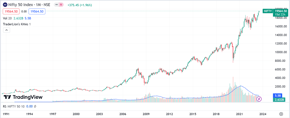 Here is a graph of Nifty 50 Index from the year 1991 till date (15/07/2023)
