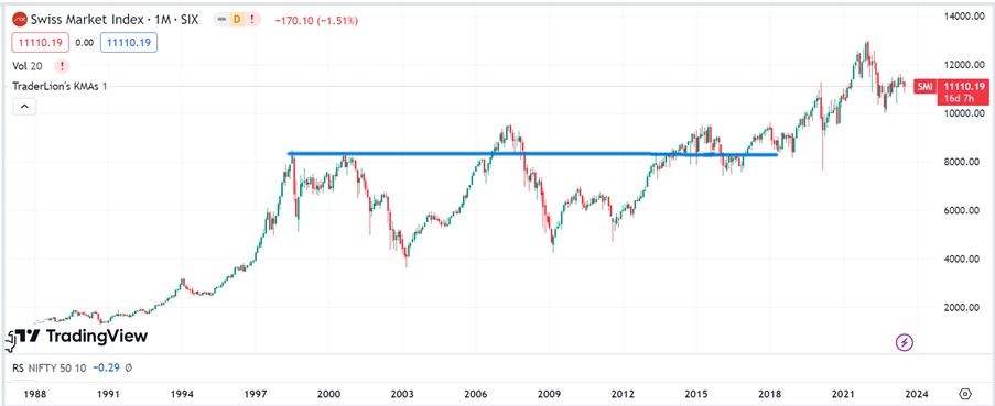 If we take a look at the long-term graphs of some of the major stock market indices – such as S&P 500, Swiss Market Index, Nifty 50 – they demonstrate a sustained upward trend over the long term and the Index Investing strategy seems like a plausible strategy in these scenarios.