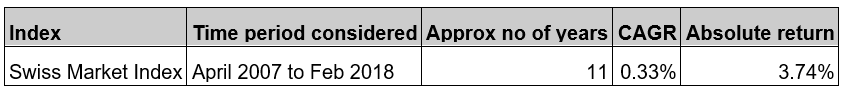 From 2007-2018 (until the value crossed the 2007 high), the Index gave a CAGR Of 0.33%. Please refer to the table below-