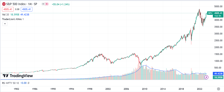 This is a graph of S&P 500 since 1982 till date (15/07/2023).