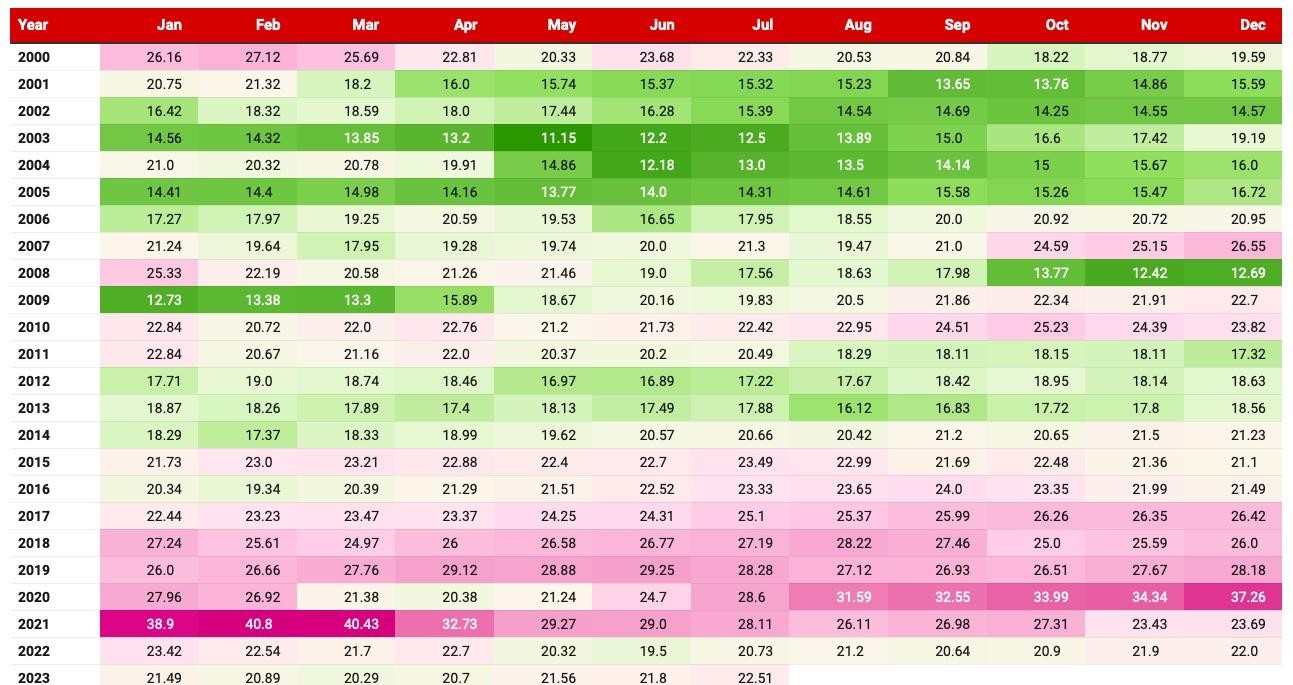 The Nifty PE ratio is currently 22.51 (average around 20). Below is a table of the Nifty PE ratios since 2000.
