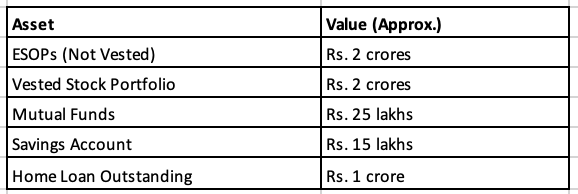 Let's consider the case of Karthik, a 35-year-old executive at a leading tech firm in Bangalore. Karthik's annual compensation of 1 crore includes an ESOP component. He's supporting a family, owns a home with an outstanding loan, has invested in mutual funds, holds a vested stock portfolio, and possesses non-vested stock options.