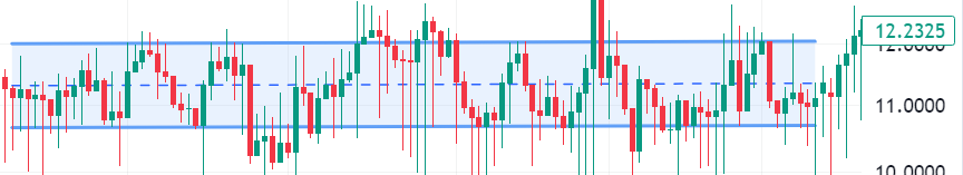 The below graph of India Vix represents a volatility of around 11-12% which in turn indicates that the market expects the Nifty prices to fluctuate between +12% to -12% annually over the next 30 days.